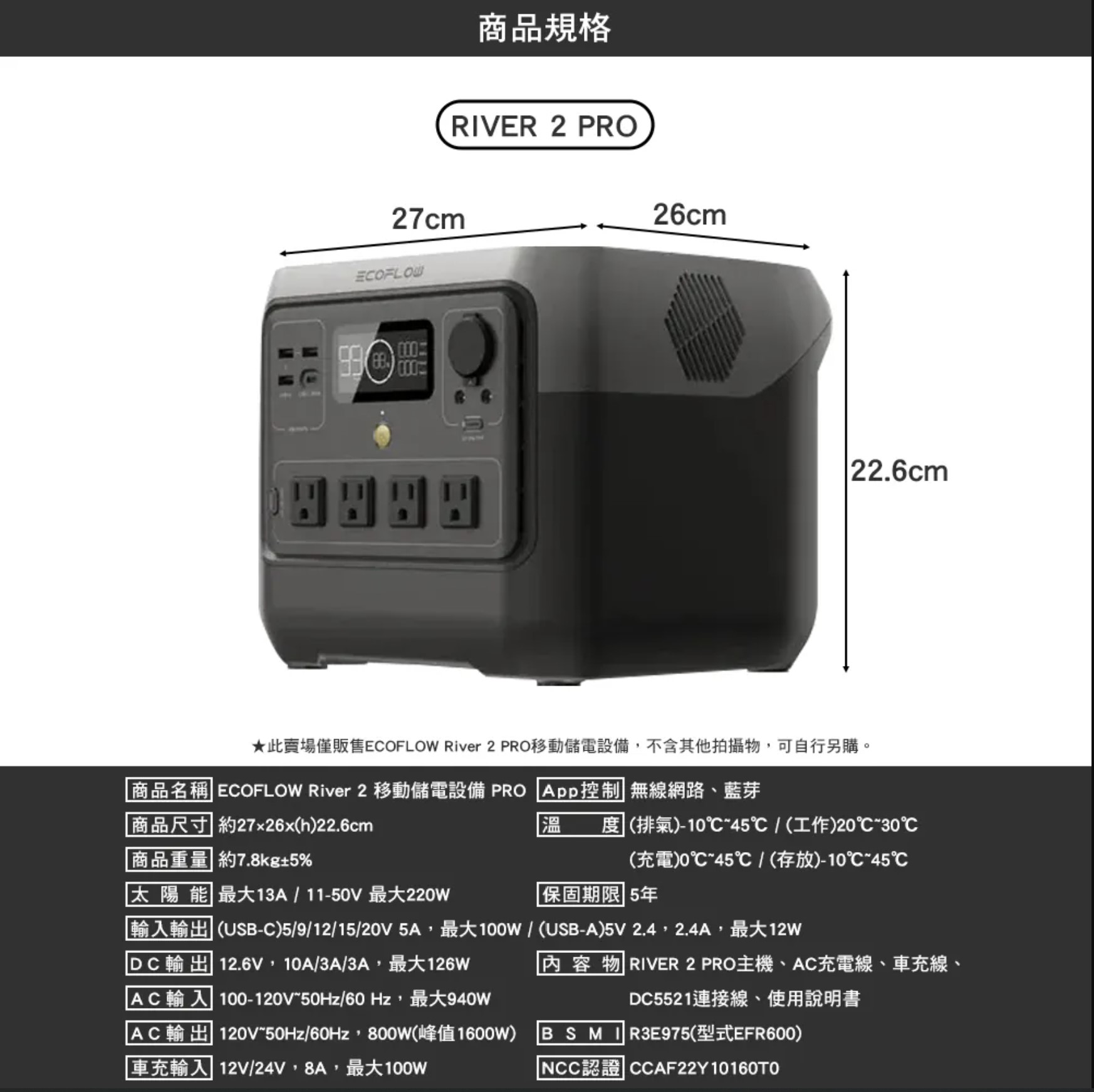 | 品名 | EcoFlow River2 Pro 戶外儲電設備 |